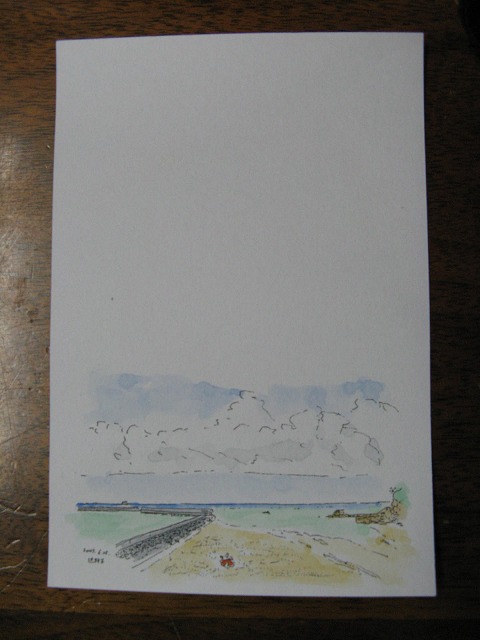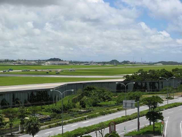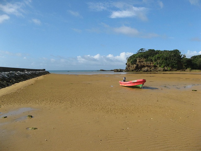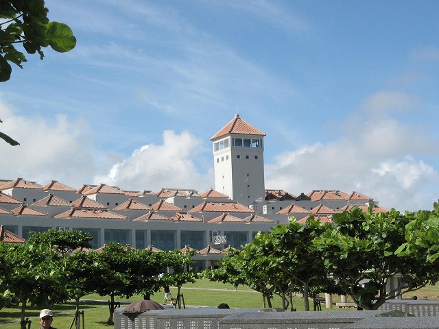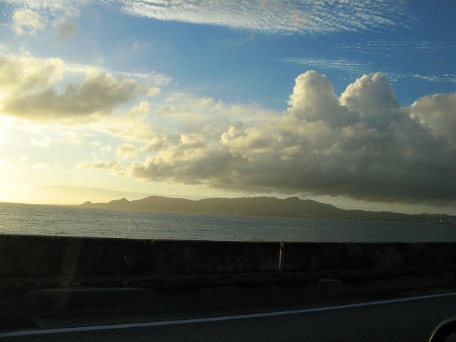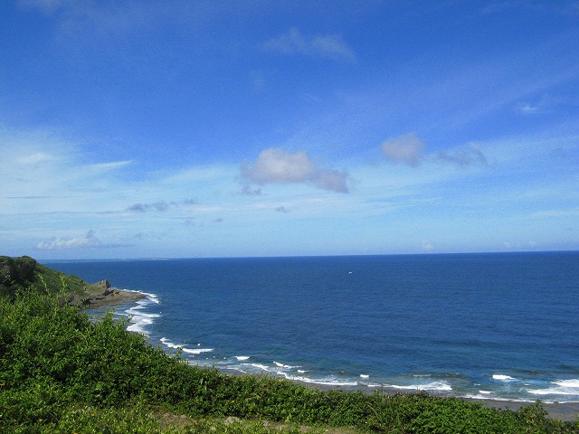沖縄は真夏。真夏の沖縄は暑いですが、空と海の青さはいいですよ。ただし、日焼けに注意。